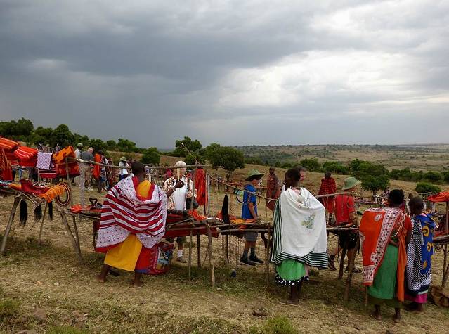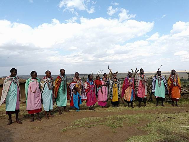 马赛人欢迎游客进村参观