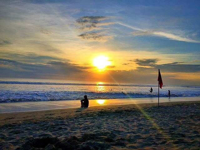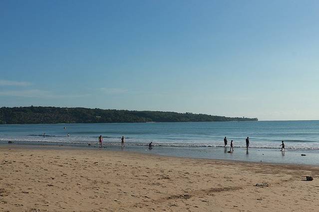 金巴兰海滩位于巴厘岛国际机场以南,以其壮观的海上日落美景而闻名,曾被评为全球最美的十大日落之一。狭长的海滩似乎没有终点,面对着无尽的海洋,脚踏软绵绵的沙,如漫步在天堂一般。每当夕阳西下,落日就像沉入大海一样,短暂却无比美妙和壮观。天色暗下,行人如剪影,又是另一幅风景画。 除了大名鼎鼎的日落海景,傍晚时遍地的露天海鲜大排挡也是金巴兰海滩的一大特色。你可以一边享用着海鲜烧烤、烛光晚餐,一边陶醉在金色的黄昏里,别有一番情调。总体上沙滩分有新旧餐厅两个区域。旧餐厅区在洲际酒店(Intercontinental Hotel)后面、靠近四季酒店(Four Season Hotel)的地方;新餐厅区则位于海湾正中央,空间更宽阔,因为靠近机场,经常可以看到飞机起降。