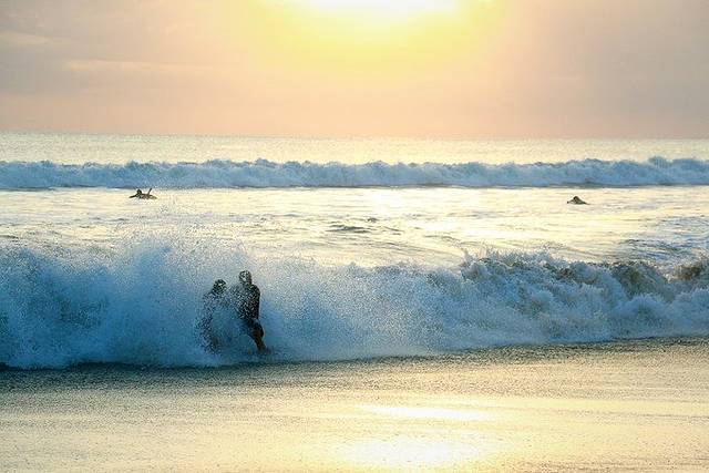 库塔(Kuta):巴厘岛旅行的第一站我们选择的是库塔,第一是因为离机场比较近,开车十几二十分钟即可到达,我们的飞机是晚上六点多到,当然不想奔波太远;第二是库塔区很热闹,也是巴厘岛的旅游购物和娱乐中心,集中了岛上最主要的shopping mall,刚到当地需要换钱,熟悉一下环境,所以库塔是个很好的选择。库塔海滩是巴厘岛最热闹的海滩,也是著名的冲浪圣地。毗邻库塔海滩的酒店与海滩之间都只隔着一条马路,走几步就是库塔海滩了。晚上,遍布库塔大街的各式酒吧和夜店,更是年轻人的天下。住在kuta,无论是冲浪、购物、SPA,还是品尝当地美食和泡吧等,都很方便。