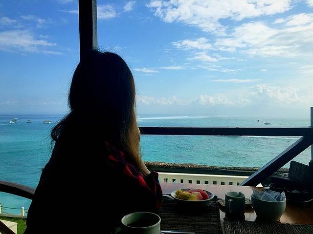 【TIPS】想要在Lia Cafe 抢到最佳观日落的黄金席位还是要预约的,当地的预约电话是08123981408。记得要提前好几天才可以预约到第一排的最佳位置,一览无遗的看到日落美景,毫无遮拦。我们提前三天在叶子酒店找前台工作人员帮忙预订第一排都被预订完了,无奈只能要第二排的位置啦。这家日落餐厅真的很旺,想要第一排的最好提前好几天预订了!