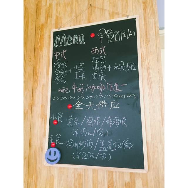 门口的两块小黑板是店长自己写的,一张今日有房,一张是今日菜单,因为想增加一些店里面的有趣氛围吧,店长说。