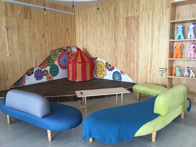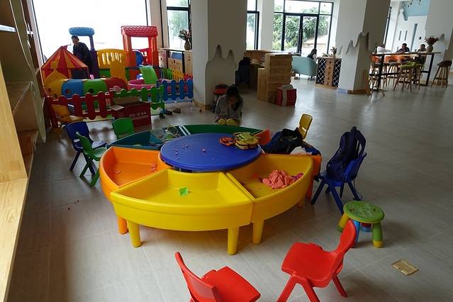 前台的背后是一个小型的游乐场,客人住的多的时候,这个地方全是小孩子的笑声,住店的客人都是来这里休闲度假的,孩子们有了自己的玩伴儿,大人们就可以独享二人时光,或者跟其他的爸爸妈妈们探讨育儿经验。