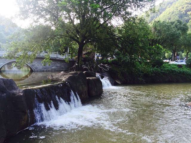 流水潺潺,流水击打着两岸的石头,发出啪啪啪的声音,好像在欢迎远方来的游客。