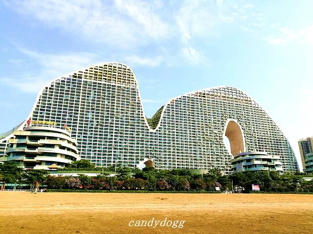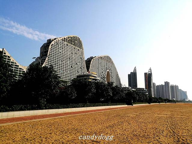 北部湾一号,外形像连绵不绝的山脉,蜿蜒曲折,我们从车上下来后,就被这个独特的建筑外形所吸引,于是去这里的售楼部问了下价格,毛坯房2楼的每平米5888元,高楼层的是8000元以上,整栋建筑过个马路就是大海和金滩,环境非常好,真想在这买套房子,哈哈。