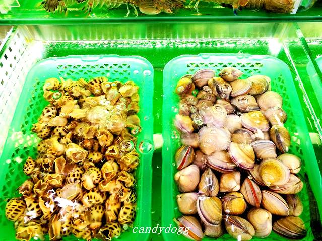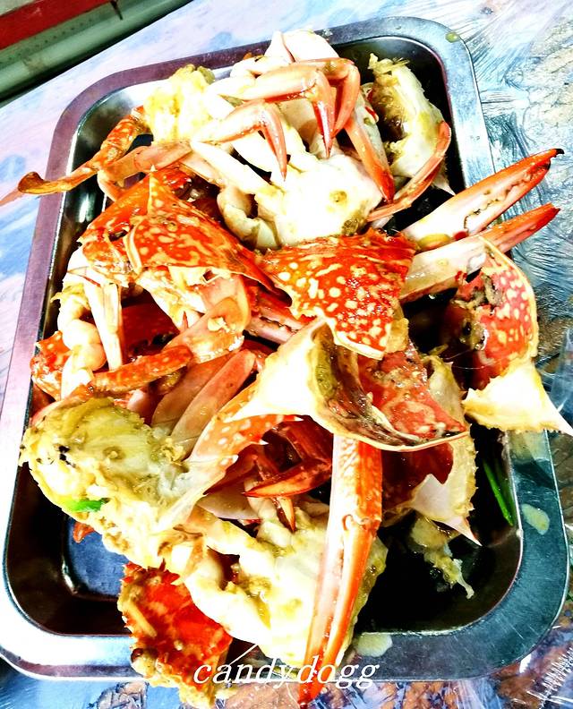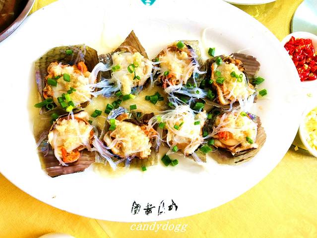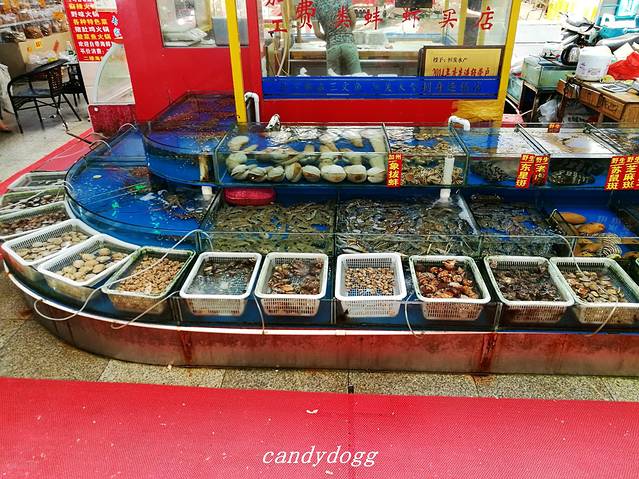 我们从冠头岭回来后,坐6路公交车到北部湾广场下车,然后沿着南珠魂雕像往老街的方向走大概15分钟,偶然发现有个红沙海鲜批发市场,于是决定在这里吃个海鲜大餐。这里的一楼是卖各种海鲜的摊档,成交价格全凭自己讲价的功力了,可以自己挑海鲜也可以让店主帮你挑,然后让店家带你去二楼的餐馆加工后就可以吃了,加工费根据做法和用料的不同约为每斤7-15元之间,一般粉丝蒸和椒盐的要15元,别的素菜是20元一份,餐具2元