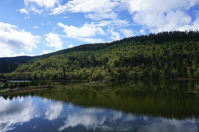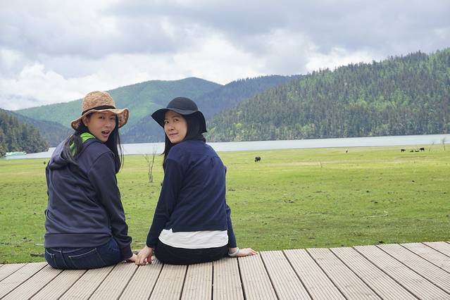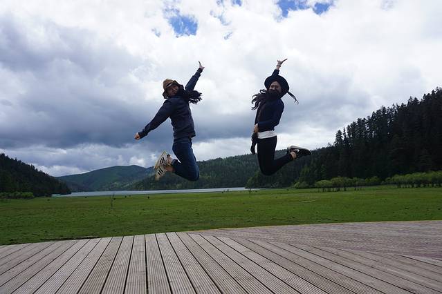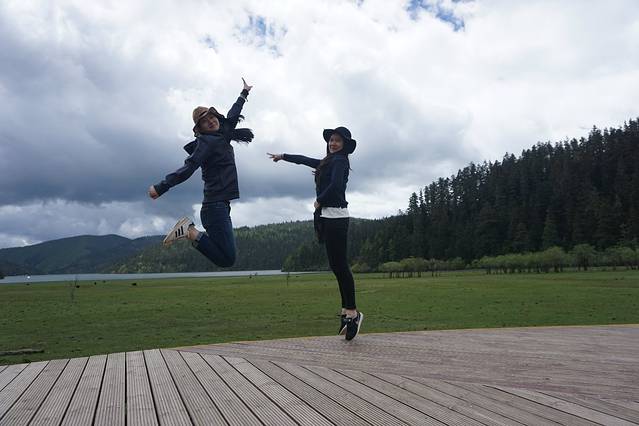 普达措公园(张杰谢娜结婚的地方),去的途中天气还可以,后来说变就变,去到公园开始阴天,幸亏临走的时候天气放晴,我们肯定不会错过这么好的风景,所以跟我们一个团的男生就成为了我们的摄影师,帮我们拍了很多照片,下午随车回来丽江古城,继续入住忆茉居