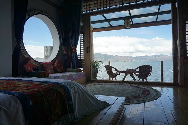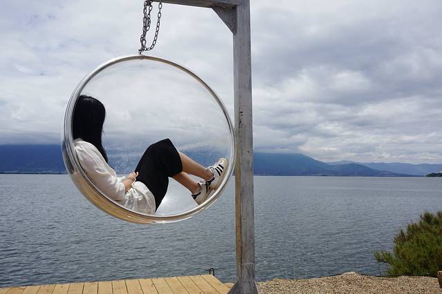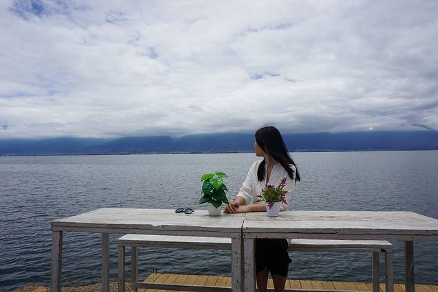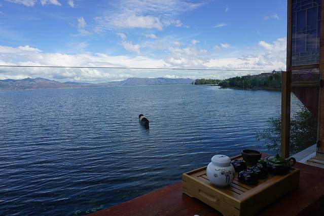 早餐后怀着不心息的心情,再驾车环双廊洱海游一圈再去丽江,幸亏天公作美,在洱海环岛游的时候天气放晴了,可以看到一片好的景色,沿途照了一些照片,那个门槛和玻璃是要给钱才能去照相,沿途也看到一些风景很好的客栈,后悔没住