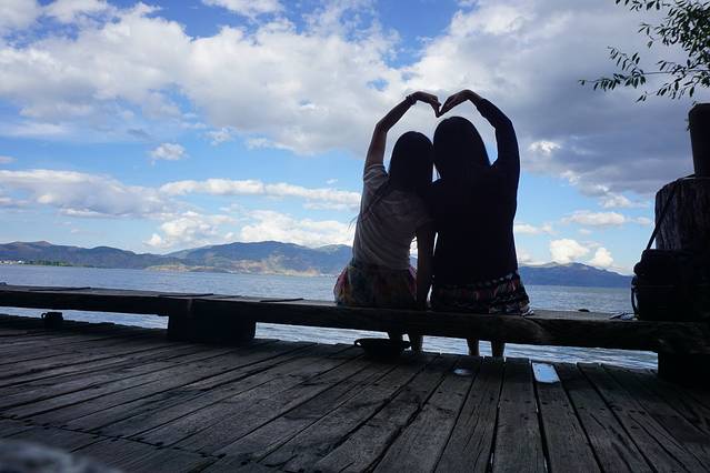 我们去云南的客栈服务都很好都会出门帮你拿行李,一进房间我们已经按捺不住兴奋的心情,刚才在大理古城还是雨天,一来到喜洲天气放晴,各种景色超级漂亮,我们真的不愿意出门,在房间里和客栈周边各种拍照,每一张图片都不需要P图,照出来每一张都是大片,难以形容的美,废话不多说,请看图片☺☺由于背景太漂亮,图片都是背光,我们只能拍剪影了,哈哈