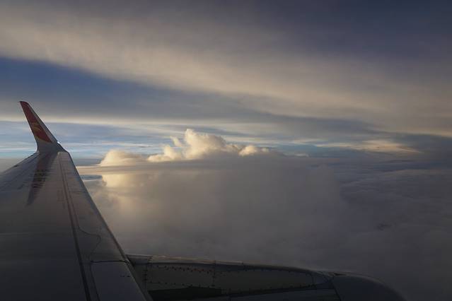 由于我们机票是下午5点多,时间有的事,然后我们就问了客栈的人怎么去吃好吃的米线(我们早餐才吃过,中午继续吃,哈哈)客栈的人超级好,一路带我们去吃,跟我们去买手信,还帮我们提东西,好到我们都觉得不好意思,呵呵。我们在客栈约车,直接送我们到机场,由于广东台风,我们飞机延误了一下下,回到机场已经赶不上轻轨了,只好坐机场大巴到江门(每人人的旅途都有一张在飞机上的拍云的照片,所以我们也要跟上潮流,呵呵)