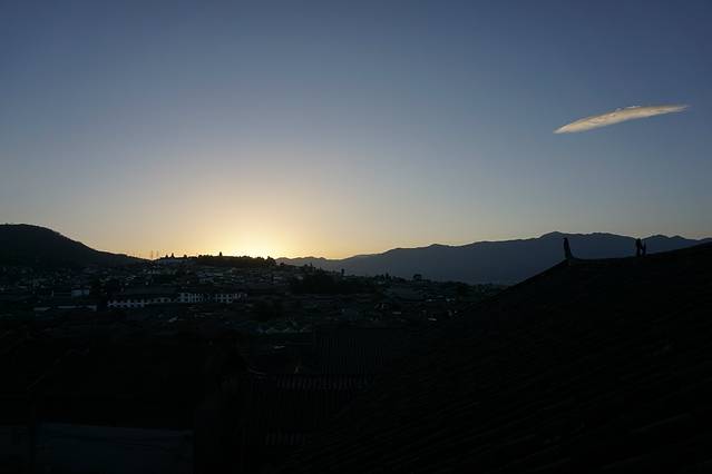 住:第七天的客栈是我们未出发前就已经预定好了,在古城半山=花间堂-隐泉,680元一晚,很古色古香,花间堂是连锁客栈,这家算是高等级一点的,能看到古城全貌,好可以躺在床上看日出,超美!客栈用的洗浴全是欧舒丹,有加热晾衣服的。他们店的早餐,有个当地阿姨做的,超级好吃。