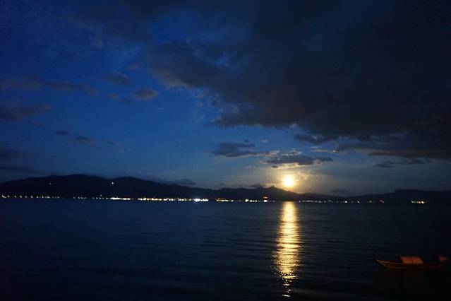 晚餐我们也没在外面吃,只出去逛一圈然后打包烧烤,买个当地的啤酒,坐在外面露台,对着洱海,听着海风,看着月出,聊聊天,好舒服