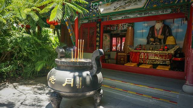 入口处,第一个部分叫做爱情谷。月老庙赫然眼前。