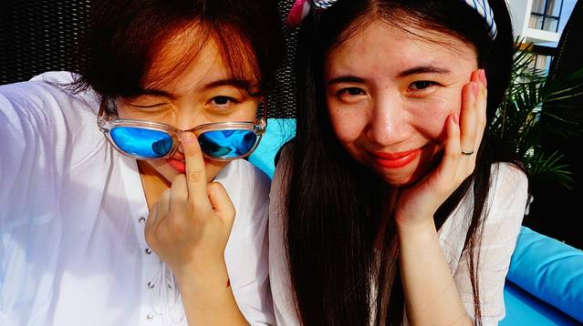 最后用我们姐妹两搞怪的自拍结束吧。