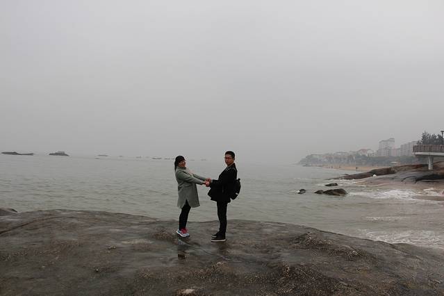 又是上车,下一站是环岛路,好无聊我们就是去拍照的。厦门的海一般般尤其是这次去,又是雾又是湿气又是下雨的,海水一点都不蓝,很浑浊。这张照片牛气吧