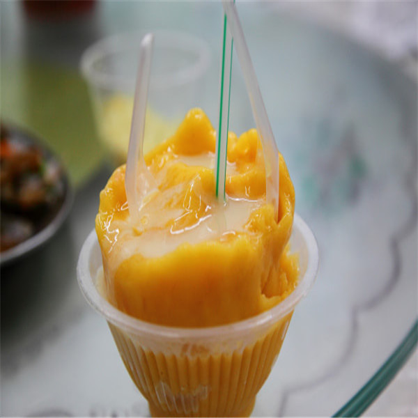 海南的水果种类很丰富,所以能做的冰沙口味也很多,芒果、火龙果、西瓜、橙子、荔枝、柠檬…将多种水果混合,打成果汁,再加入牛奶、蜂蜜等放入炒冰机,大约5分钟后,炒冰就完成了,它也成为海南特色冰品之一。