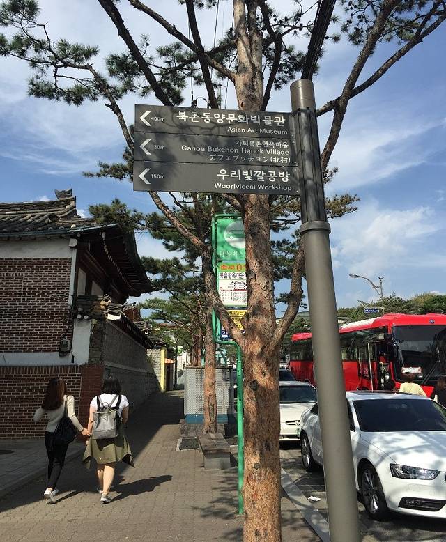 北村是适于步行的村庄。小巷路如迷路一般纵横交错、层层叠叠,充满浓浓的历史气息,这里留下了人们的生活痕迹,且到处散布着珍贵的文化和宝物。这条路的对面就是仁寺洞,与北村遥遥对望。