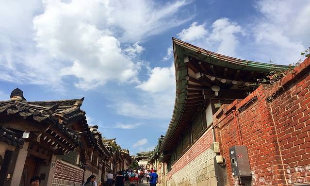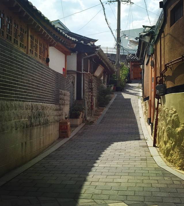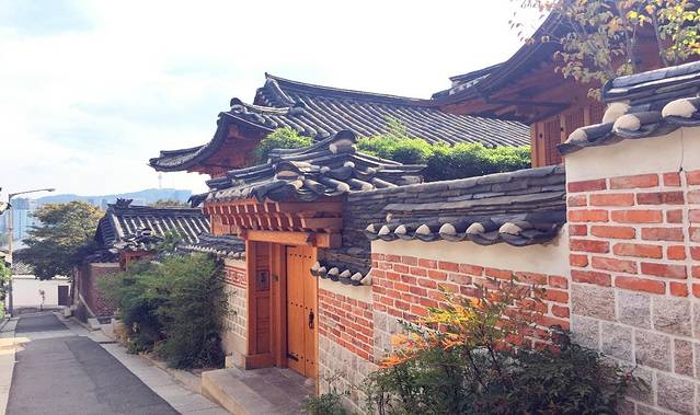 北村是指景福宫(朝鲜时代王宫之一)和昌德宫(朝鲜时代王宫之一)之间的区域。在朝鲜时代(1392-1910),统治阶级两班们多在这里居住,遗留下许多传统房屋。现在的北村并非是供游客观赏修建的民俗村,而是人们实际居住生活的村庄,包括11个洞900多座韩屋。随着韩屋画廊、传统作坊、韩屋餐厅等的入驻,这里更成为一个倍受瞩目的新文化艺术区。北村韩屋村还是《冬季恋歌》、《绅士的品格》等韩剧拍摄地,部分游客到访还为追寻影视剧中的暖心场景。
