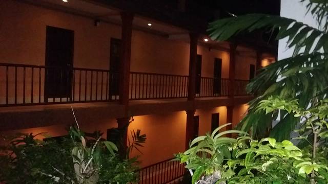 出机场,一辆6成新的大巴接待我们,空调真心的凉,开始慢慢悠悠的把我们往岛中心送,路途不说,这就开始第一顿让我吐槽的饭,第一天的晚餐,八个菜,一个汤,米饭管够,我的天除了空心菜能吃,其他的就是往下硬塞呢,我家姑娘皱着眉头吃一口吐一下舌头,最后门口买了两个芒果作为晚上充饥的食品吧。
