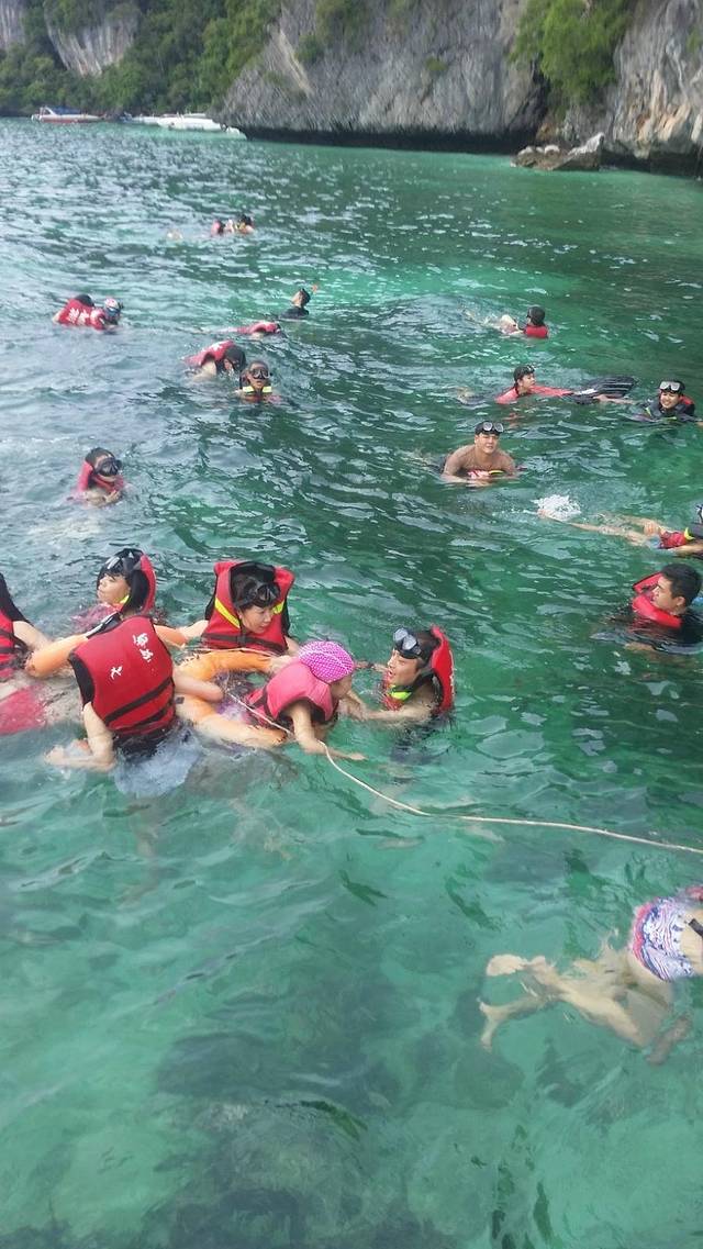 浮潜,娘的都着急的往下跳,下去了都着急啊往上爬,奶奶个岁,我保护着我闺女,旁边一个大妈还一直拽着我,我了个天,光想一脚踹死!不过水是真清,下面有小丑鱼,光顾上照顾孩子了,也没有拍照。