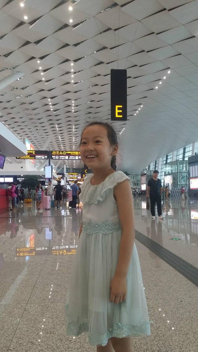 大姑娘第一次出国,开心的不得了,在机场里面就没有闲过。