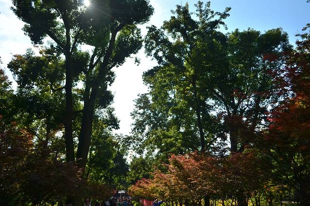 下面进入多图模式,小伙伴们别被闪着呀貌似我们进来得还不算晚,人不是很多,但是这个点枫叶也没红呢,权当来爬爬山啦,空气好好