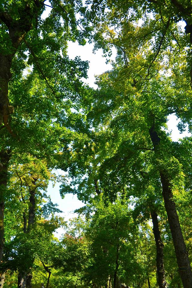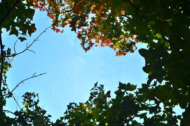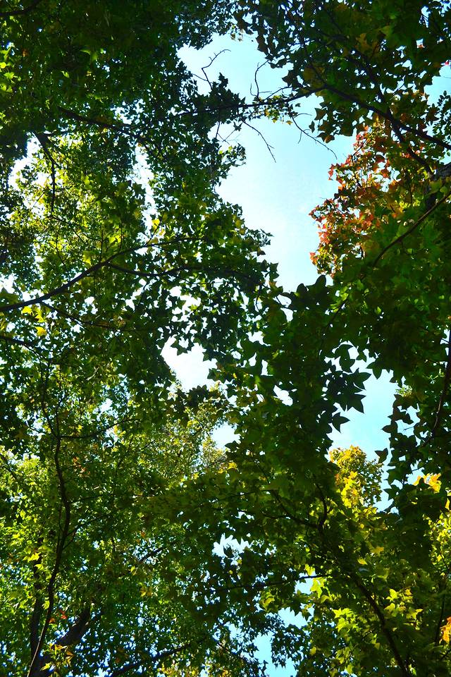 蓝天。。无云。。透着树叶看天空赶脚很好哎,告别魔都的汽车尾气