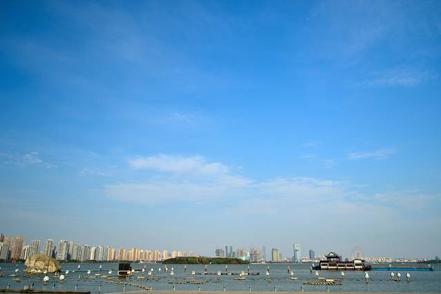 从地铁站出来,左手边是东方之门,右手边就是金鸡湖啦,苏州的金鸡湖还是比较出名的啦,坐在湖边吹吹风,和三五好友聊聊天,打打牌,或者去骑骑单车,很少悠哉的哟