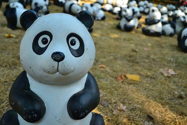哈哈,下面好多小熊猫啊,一群一群的,特意挑了个呆呆的