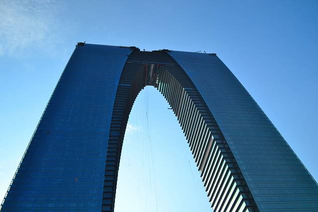 大裤衩还没完全建好呢,顶部还没封顶,据说以后将是园区甚至苏州最豪华最高达上的星级酒店和星际办公楼