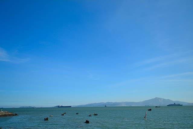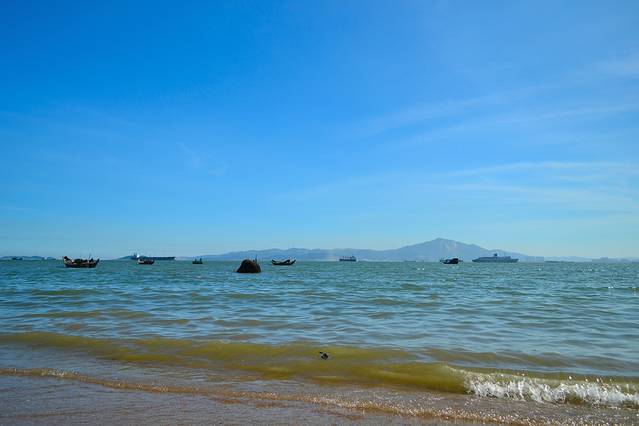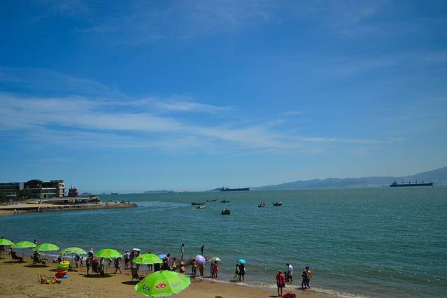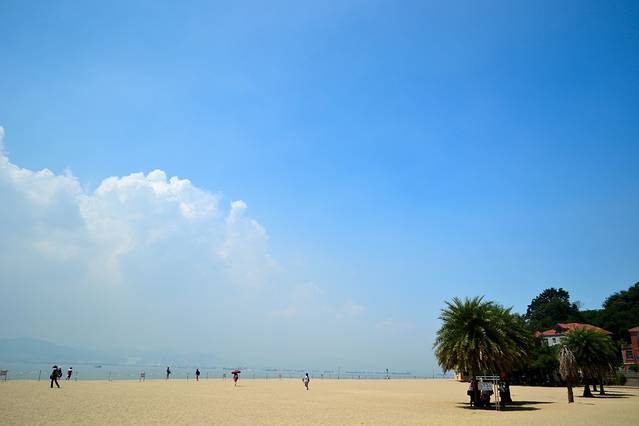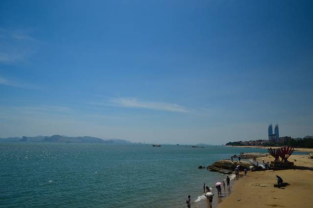 在忧桑中坐公交去往曾厝垵,路过厦大白城沙滩,立刻心情鸡冻起来,我要下海!!