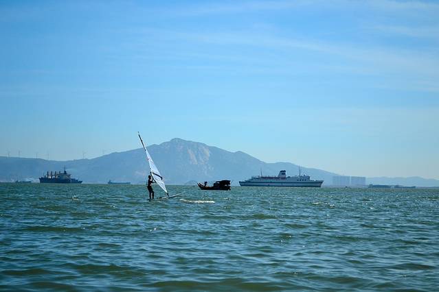 曾厝垵大概逛了1个半小时,然后就去环岛路沙滩上吹风了,虽然太阳很大,但是对于喜爱水的孩子,海边觉得永远是最有魔力的。