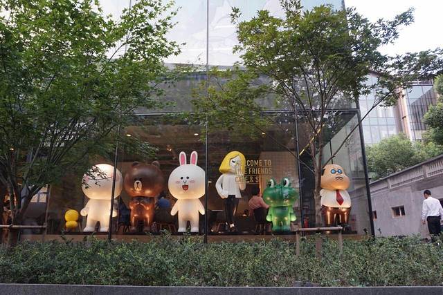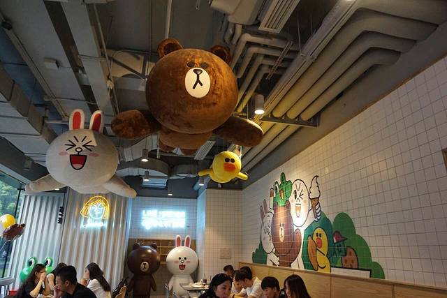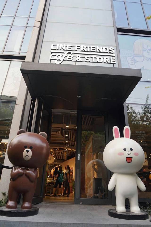 从地铁十号线或十三号线新天地站出来就是复兴广场了,我来复兴广场不是来shopping的,而是来拍照的。哈哈哈。复兴广场旁边有一家Line Coffee,不认识路的可以问问复兴广场的保安。现场拍照的人也是炒鸡多,不过真的敲极可爱啊,一米八的大line熊!!网红拍照圣地!