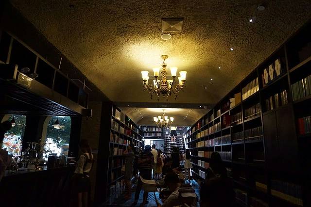 小镇里的钟书阁。各种高逼格啊,在里面也可以买喝的,不过会比较贵。地下是书,天花板也是书,二层也有很多座位和书的。有些位置还是很舒服的,有的人就直接躺在榻上看书了。