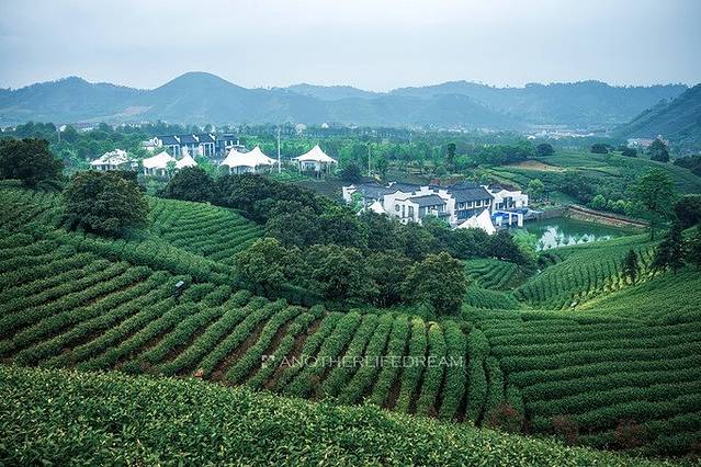 有的居于山顶,俯览四下;有的嵌于山坡,藏身绿野;亦有的亲于水岸,与茶园、山谷、碧水浑然一体,悠远安静更不失高雅。