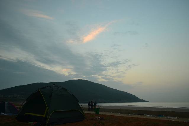 到东沙的时候还是白天,还有太阳,然后一群人忙着搭帐篷什么的,搞好之后已经天黑了,好吧,是时候拍几张照片了