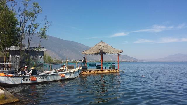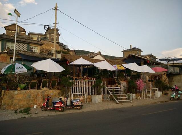 海东到双廊这一段是环海东路,一般认为东路比西路美一点,因为环海东路一侧是山,另一侧就是洱海,环海西路有些路段会隔着一些村子,然后才是洱海。时钟早已悄悄过了12点,正午的太阳将疲惫的身影缩到很小很小,却丝毫减轻不了强烈的饥饿感。在一个小村子里转了好大一圈才找到一家小饭馆。