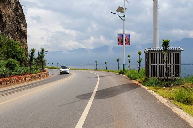 租到车后,沿着导航给的路线,出发了。还好我们几个都是有过很多旅行经验的人,知道会环海,所以身上带的东西都不多,一个背包就能装下。骑了大概十几分钟就能看见洱海了,大理海拔高,辐射本来就强,如果再加上湖面的反辐射,紫外线就更强了,所以一定要穿长袖长裤,抹防晒霜,不然晒黑还好,晒伤就惨了。