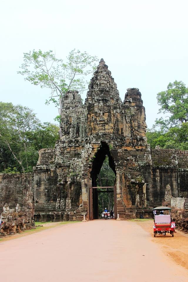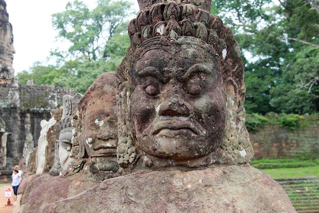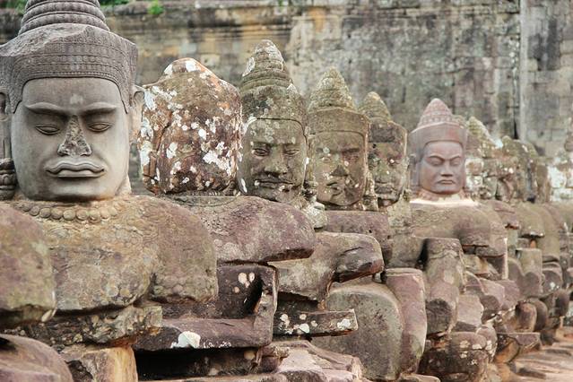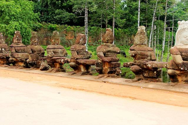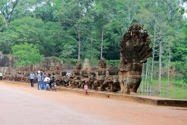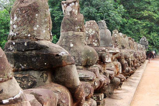 大吴哥城(Angkor Thom)南门,门外的神仙和修罗群像安了不少新雕的头像,显得更加完整。
