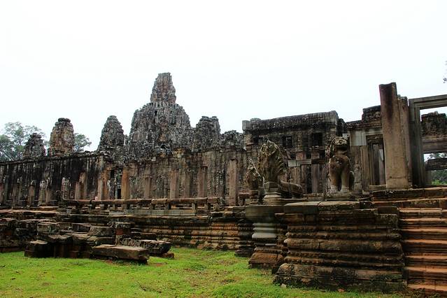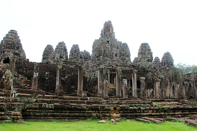 巴戎寺 (Bayon)坐落于吴哥通王城之中心点,以佛面塔、回廊壁画而著名,因为阇耶跋摩七世 (Jayavarman VII) 笃奉佛教,整个寺庙采用佛教教义的须弥山(世界的中心)为概念而起造。