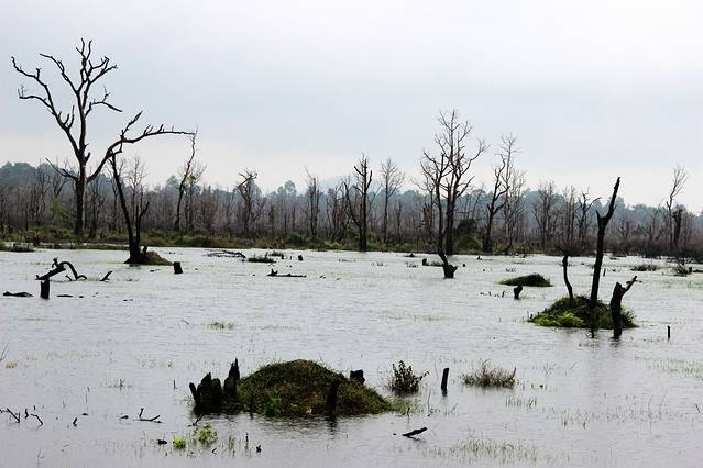 龙蟠水池位于柬埔寨暹粒,意为缠绕的巨蛇,缘于水池中小岛上依照须弥山而建造的石塔上,有一个两条蛇神Naga缠绕在一起的雕像。