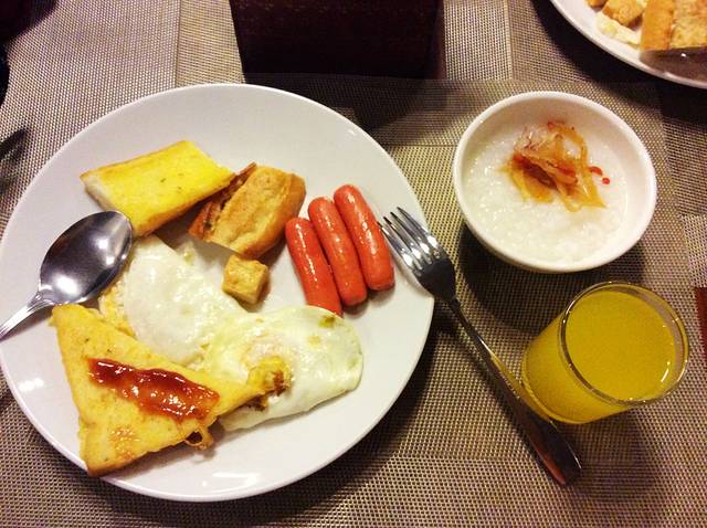 酒店自助早餐,有中式有西式,满足不同国家客人需求,味道还不错哦!