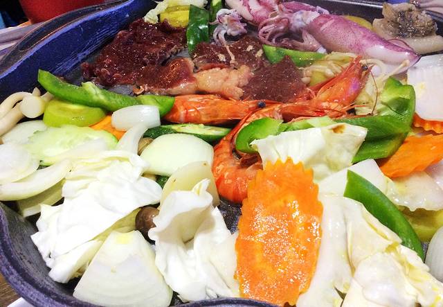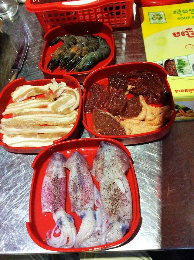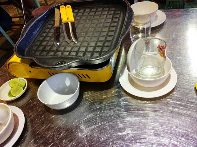 柬式BBQ有两种,一种是煎烤式,一种是火锅汤料式。宝儿爷选择的是煎烤式。