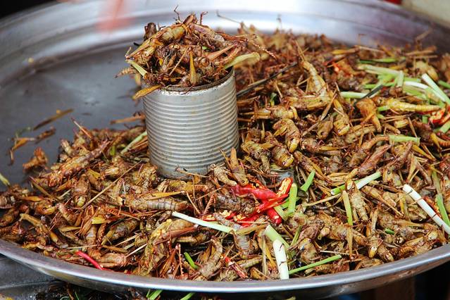 ▲东南亚重口味美食!!!炸蚂蚱……1美金一杯,不是刚起锅的,所以不是非常脆,味道其实还可以……