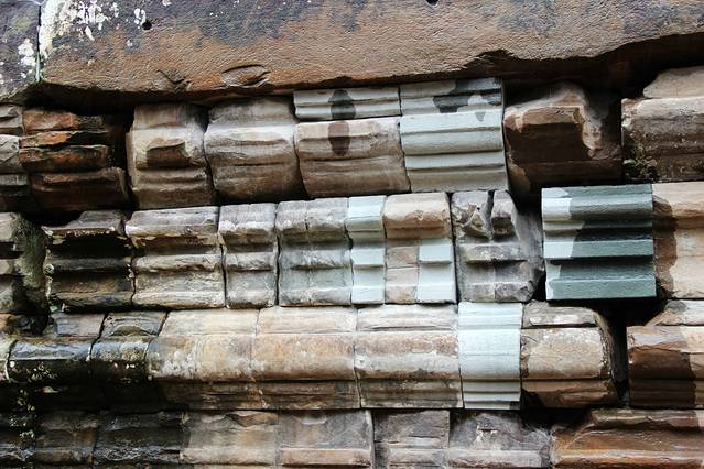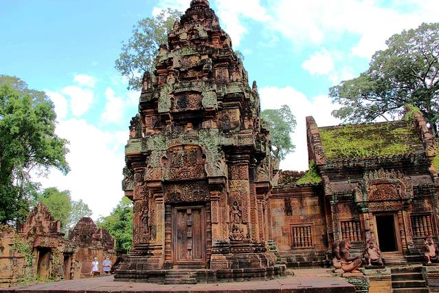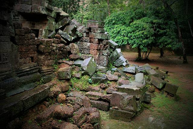 茶胶寺遗迹可见祭坛上的五座密檐式方塔,是高棉的第一座全砂岩石建筑。