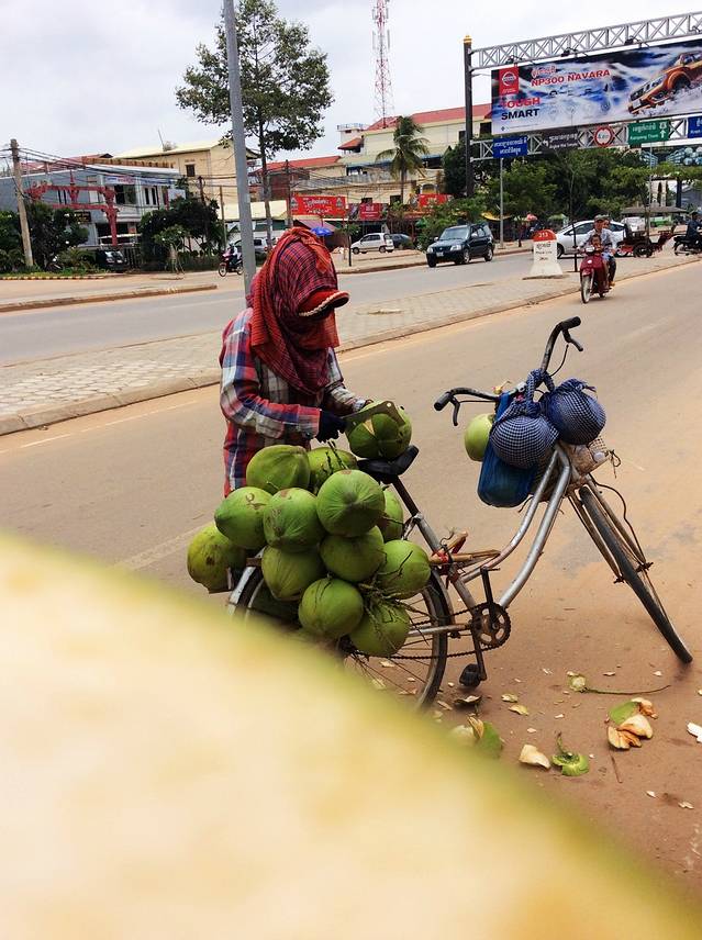 ▲椰子,景区外面卖3000瑞尔(1美金=4000瑞尔)一个,市区路边1美金3个。