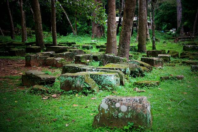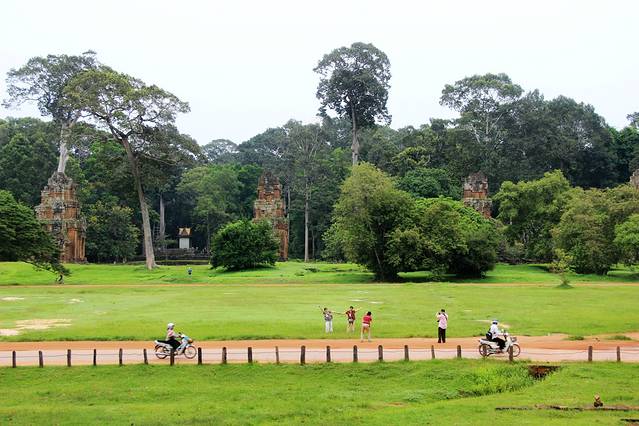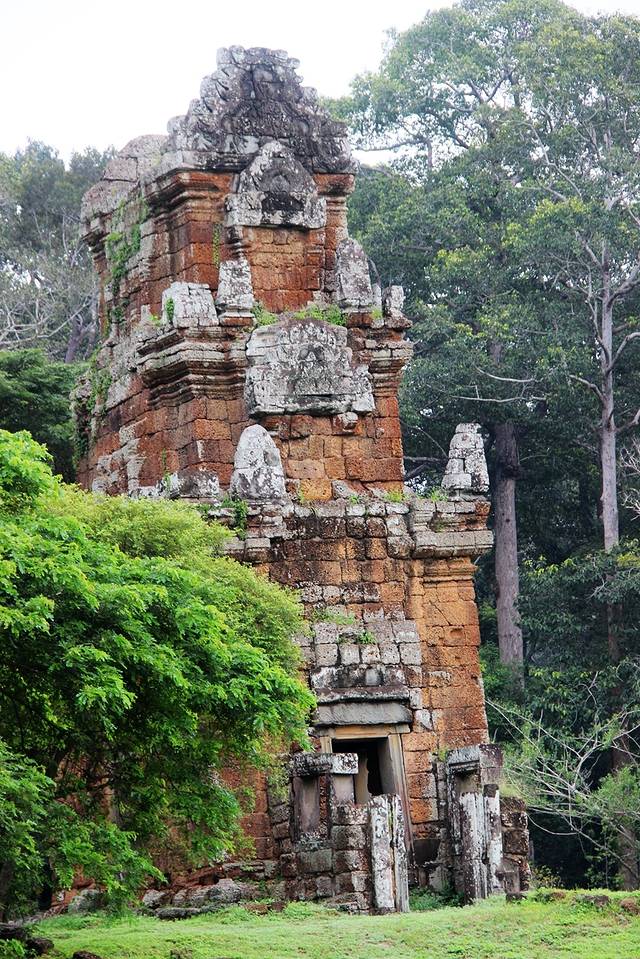 这些塔在树林掩映下点缀着破败的战象台阶,构成一幅沧桑的画面,值得用相机记录下来。