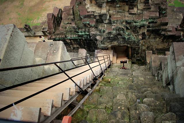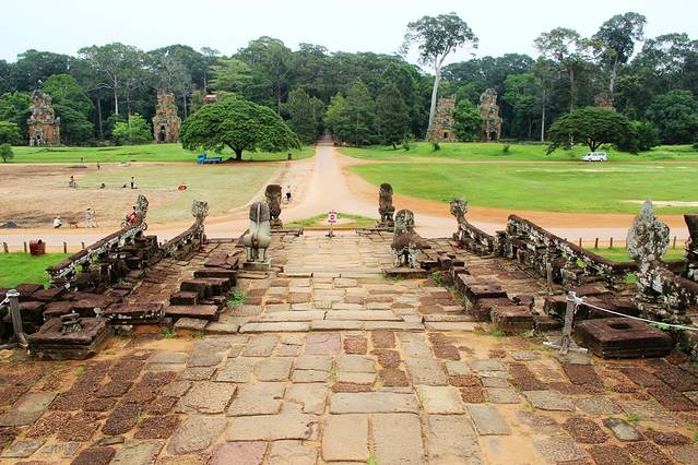 整个台阶看上去像是一个巨大的检阅台,可以设想一下在吴哥王朝的鼎盛时期,国王站在检阅台上简约士兵和战象的盛况,当然还有战象之间搏斗的惨烈与血腥。