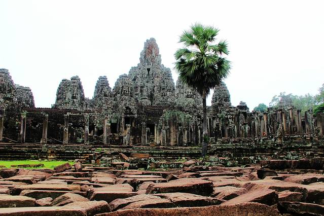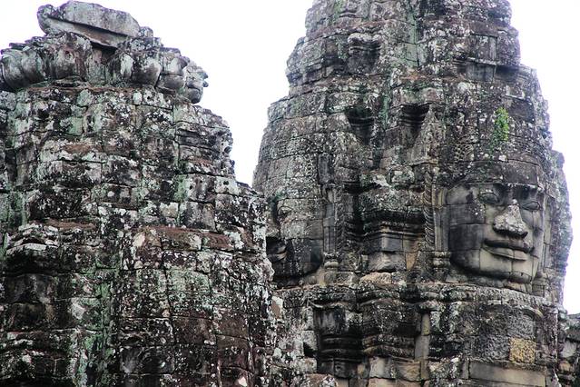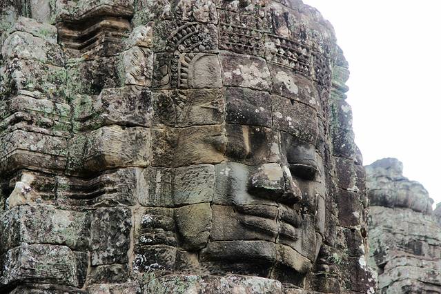 巴戎寺最著名的是刻在塔身的巨大的四面观音像,象征着当时高棉王国的强盛。