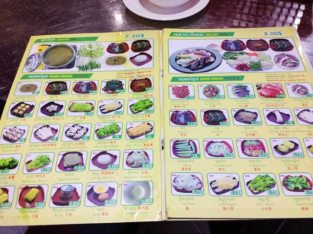 打开却看到了中文标注……看来华人亦是吴哥的重要客源呐!免去点菜的烦恼,直接点了一份8美金的套餐(图右上示)。