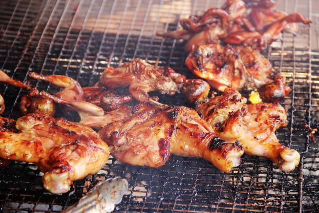 ▲烤鸡腿,5000瑞尔一个,很大只,刷了糖水之类,所以吃起来甜甜的。